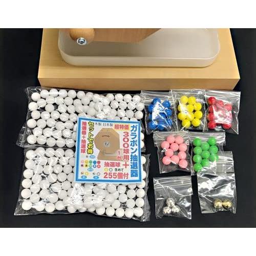 商品情報 300球用+255球 ・・Style:300球用+255球 ・製造:日本製 ・セット:抽選器と抽選球のセット ・抽選球:金(穴あり)、銀(穴あり)もついています |