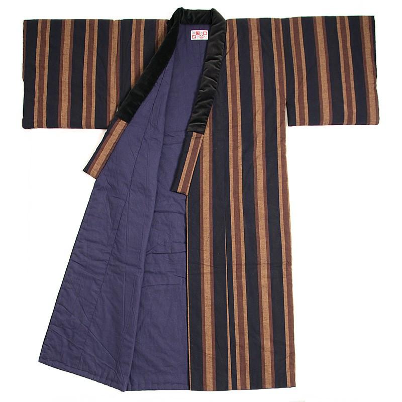 綿縞四つ紐前合わせ半天 久留米絣内合わせはんてん 半纏 綿絣柄