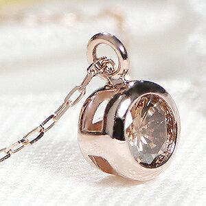 K18PG 0.20ct 覆輪 一粒 ブラウン ダイヤモンド ネックレス 18金 ピンク ゴールド 一粒 ひと粒 ペンダント 人気 ダイヤ フクリン留め シンプル 329929 一粒 ブラウン