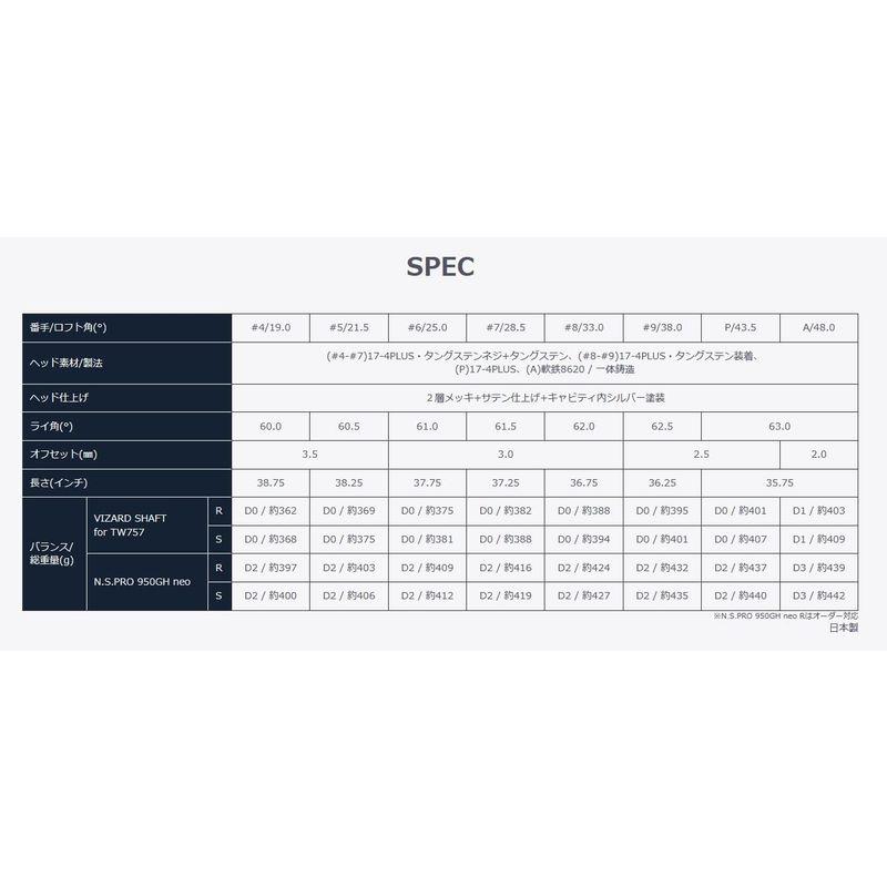 TW757 FOR アイアン T//WORLD 単品 VIZARD 番手:#A フレックス:R ロフト角:48の検索結果